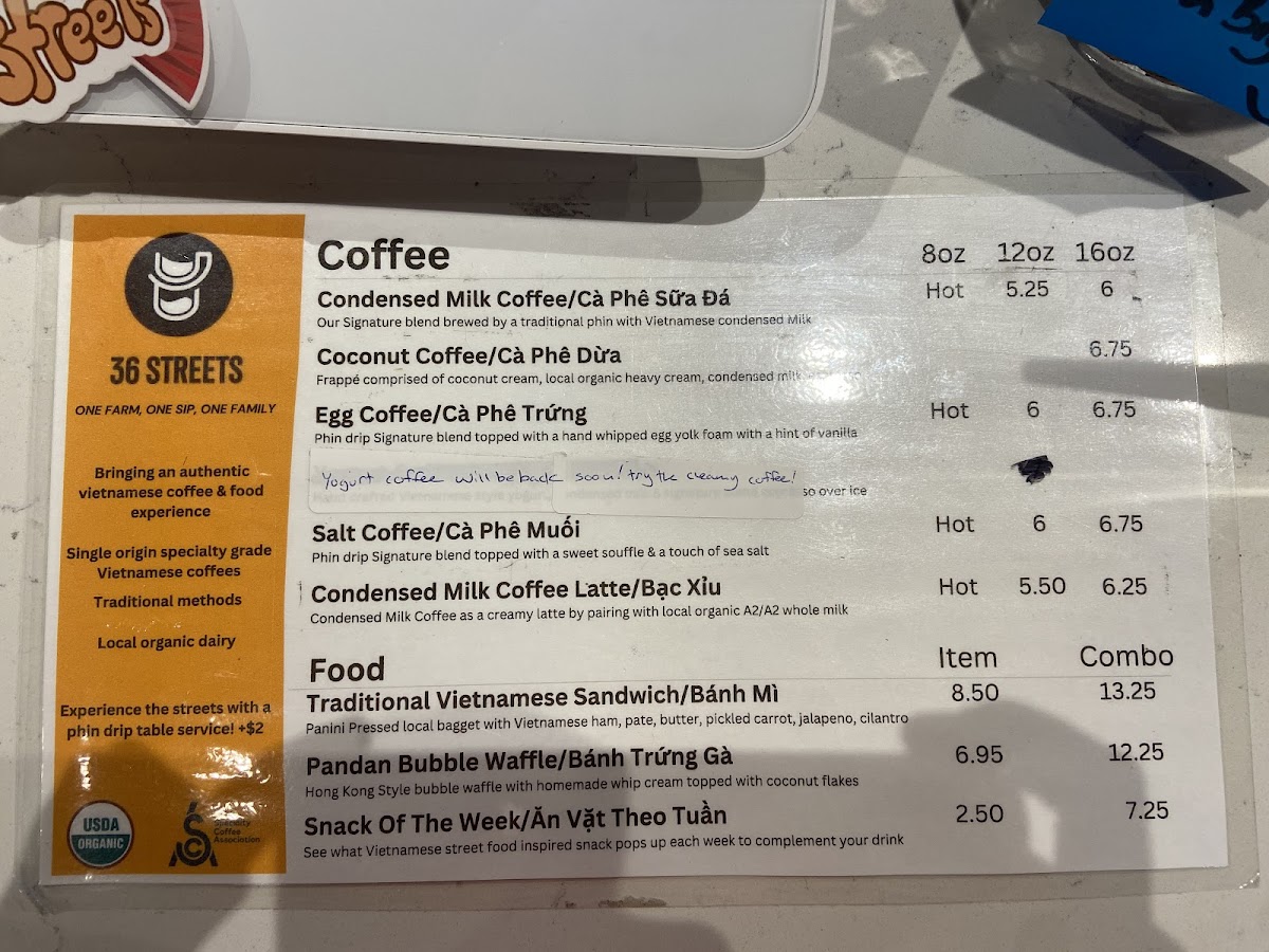 Ding Tea & 36 Streets Vietnamese Coffee Menu